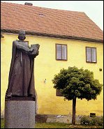 Bronzová socha Mistra Jana Husa na náměstí od Karla Lidického z roku 1958. Socha je umístěna na upraveném soklu, mistr stojí s nakročenou pravou nohou, v levé ruce drží Písmo svaté.
