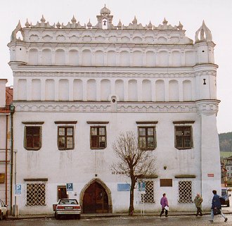 Nr. 48, Alte Apotheke (Rozacinovsky Haus) ist ein gotisches Haus, um 1600 im Renaissance-Stil umgebaut. Aus dieser Zeit stammt der Giebel, durch Säule, Pyramiden und Kugel gegliedert. Die Sgrafitti-Ausschmückung ist aus der Wende des 15. und 16. Jhs, wobei noch ein Rest einer gotischen Malerei erhalten blieb.